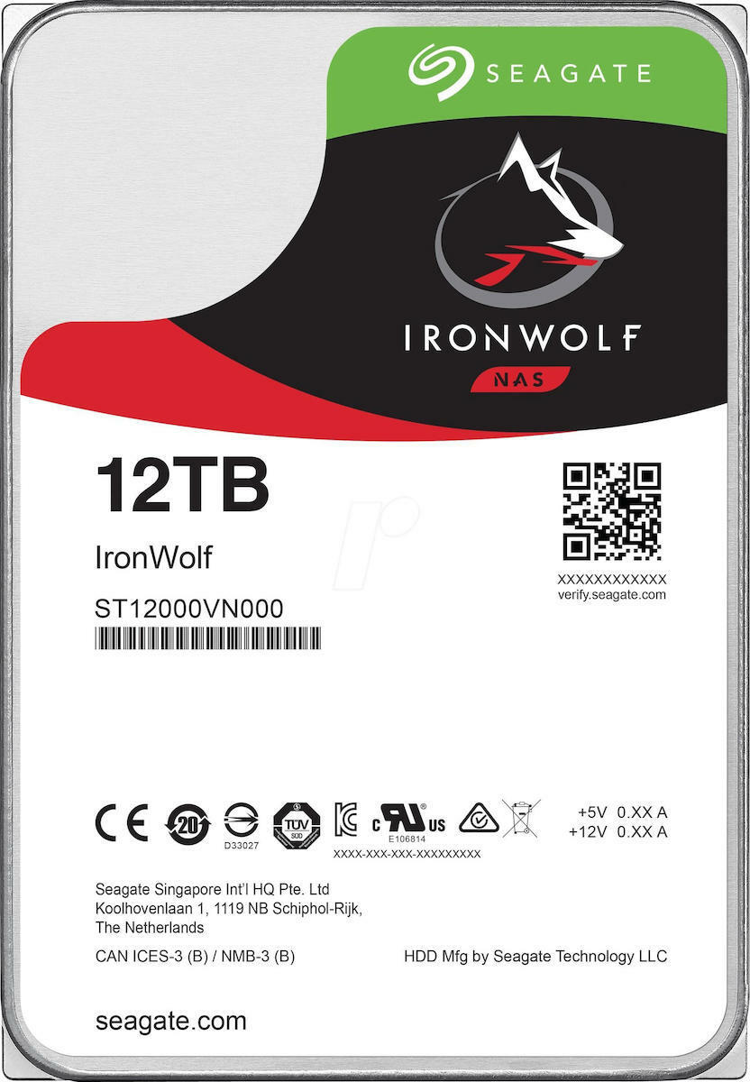 Seagate IronWolf Nas 12TB HDD Σκληρός Δίσκος 3.5″ SATA III 7200rpm με 256MB Cache για NAS ST12000VN0008